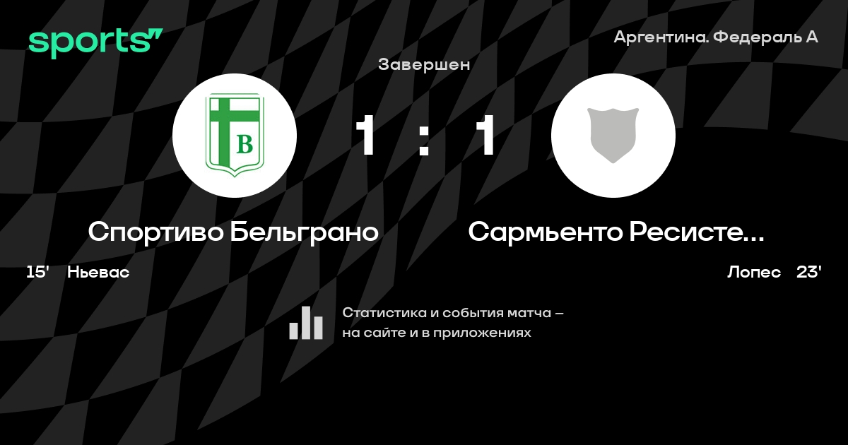 Трансляция Спортиво Бельграно - Сармьенто Ресистенсия