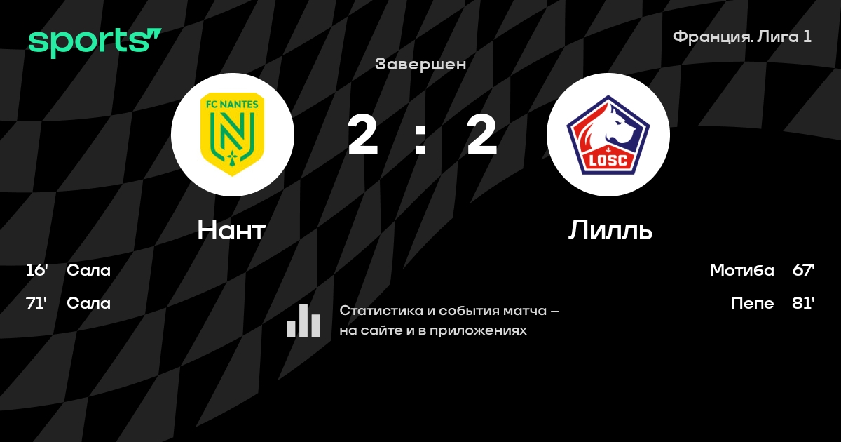 Чемпионат Франции. «Нант» сыграл вничью с «Лиллем», «Лион» уступил «Ренну»