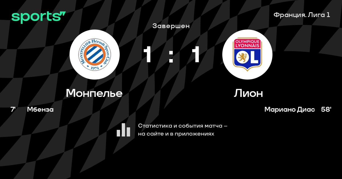 Чемпионат Франции. «Лион» сыграл вничью с «Монпелье», «Марсель» – с «Нантом»