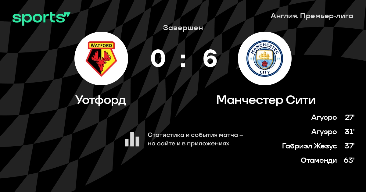 Эдерсон - Б. Менди, Отаменди, Стоунз, Уокер - Сильва, Фернандиньо, де Брюйне - Габриэл Жезус, Агуэро, СтерлингЗапасные: Браво, Мангаля, Данило, Делф, Гюндоган, Бернарду Силва, Сане