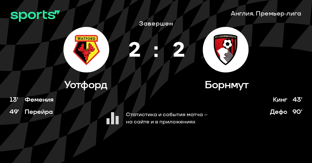| 14 | Уотфорд | 38 | 11 | 8 | 19 | 44 | 64 | -20 | 41 | ||