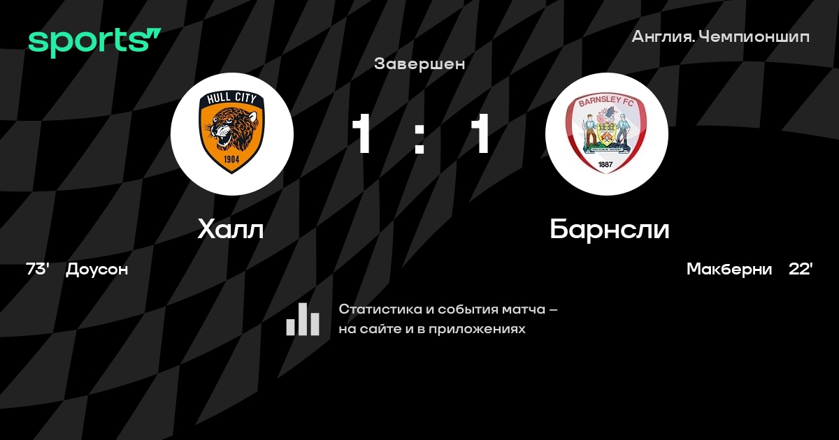 Чемпионшип. «Халл» сыграл вничью с «Барнсли», «Рединг» уступил «Шеффилд Юнайтед»
