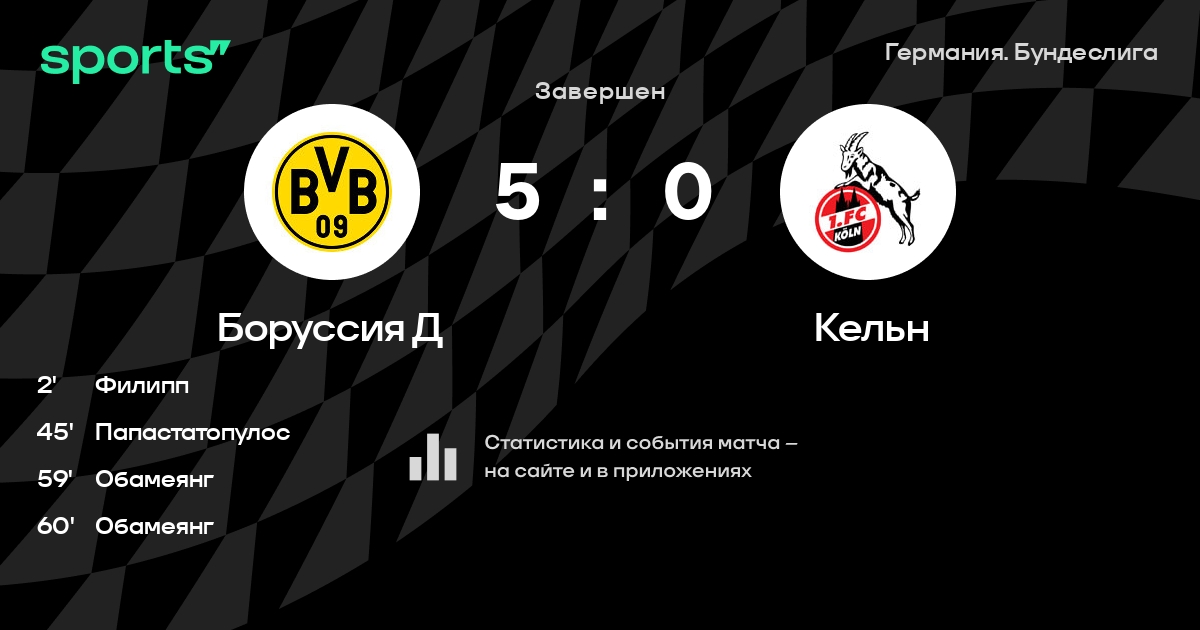 «Боруссия» Д — «Кельн». Обамеянг оформил дубль за 2 минуты