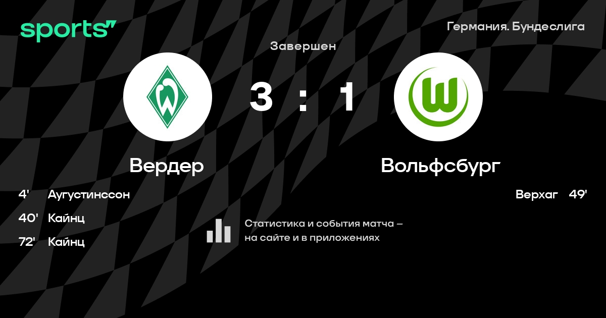 Чемпионат Германии. «Вердер» обыграл «Вольфсбург», «Штутгарт» был сильнее «Боруссии» М