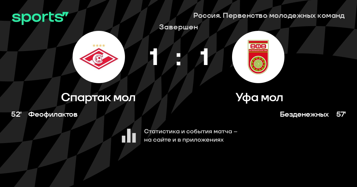 Первенство молодежных команд. «Спартак» сыграл вничью с «Уфой»