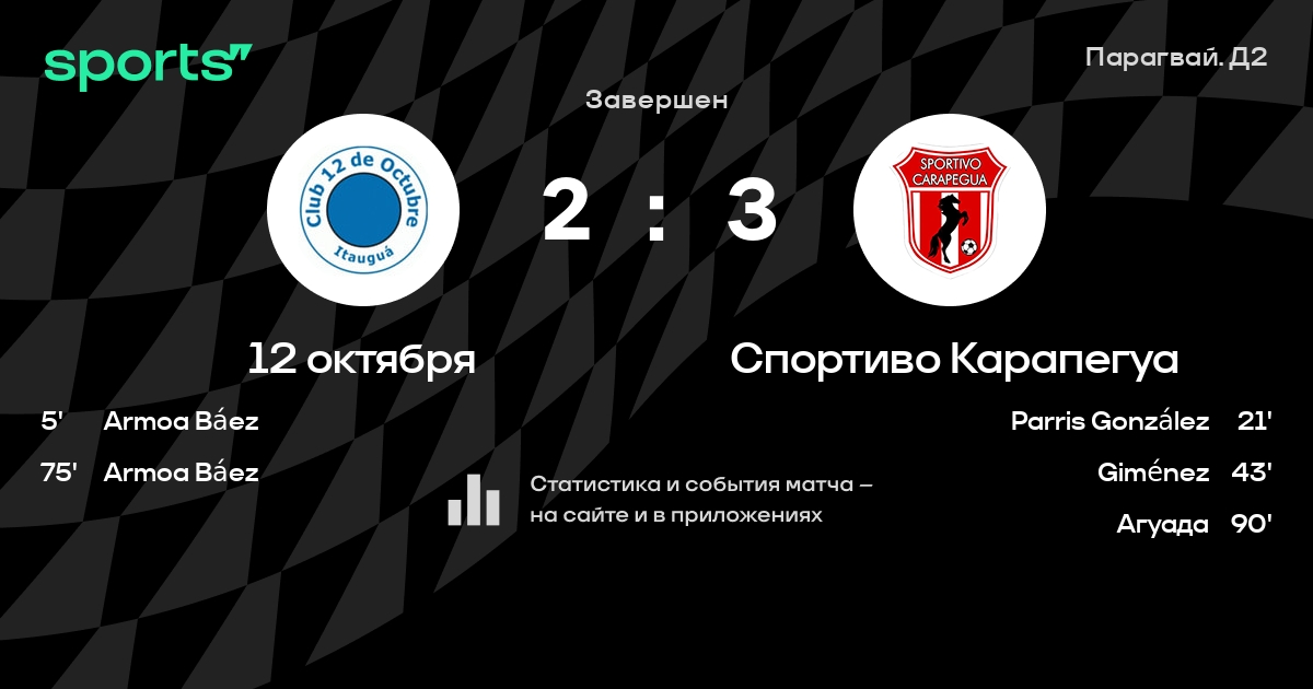 12 октября – Спортиво Карапегуа: Спортиво Карапегуа не проигрывает в 5 последних матчах против этого соперника