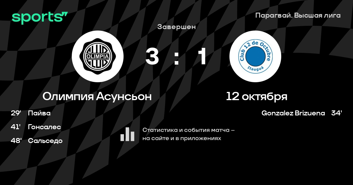 Олимпия Асунсьон – 12 октября: 12 октября забивает в 5 из 7 последних матчей против этого соперника