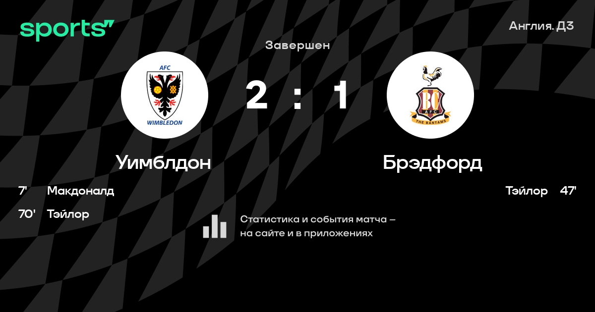Трансляция Уимблдон - Брэдфорд