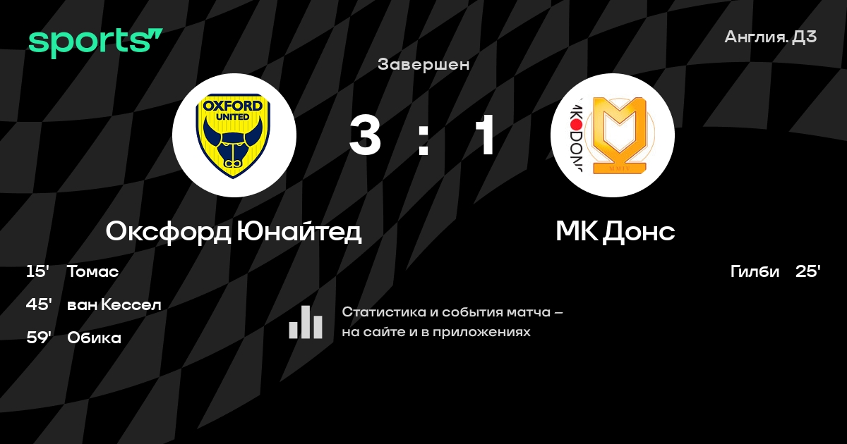 Трансляция Оксфорд Юнайтед - МК Донс