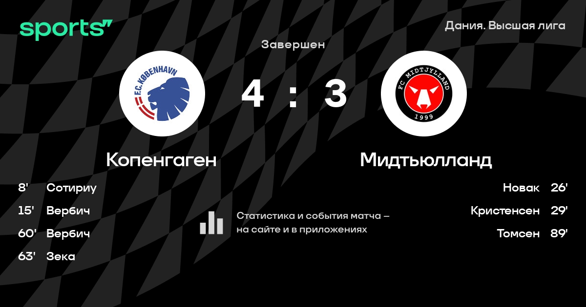 Ольсен - Люфтнер, Бойлесен, Вавро - Фальк, Зека, Квист, Томсен, Вербич - Павлович, СотириуЗапасные: Андерсен, Бенгтссон, Грегуш, Куск, Аманкво, Пушич