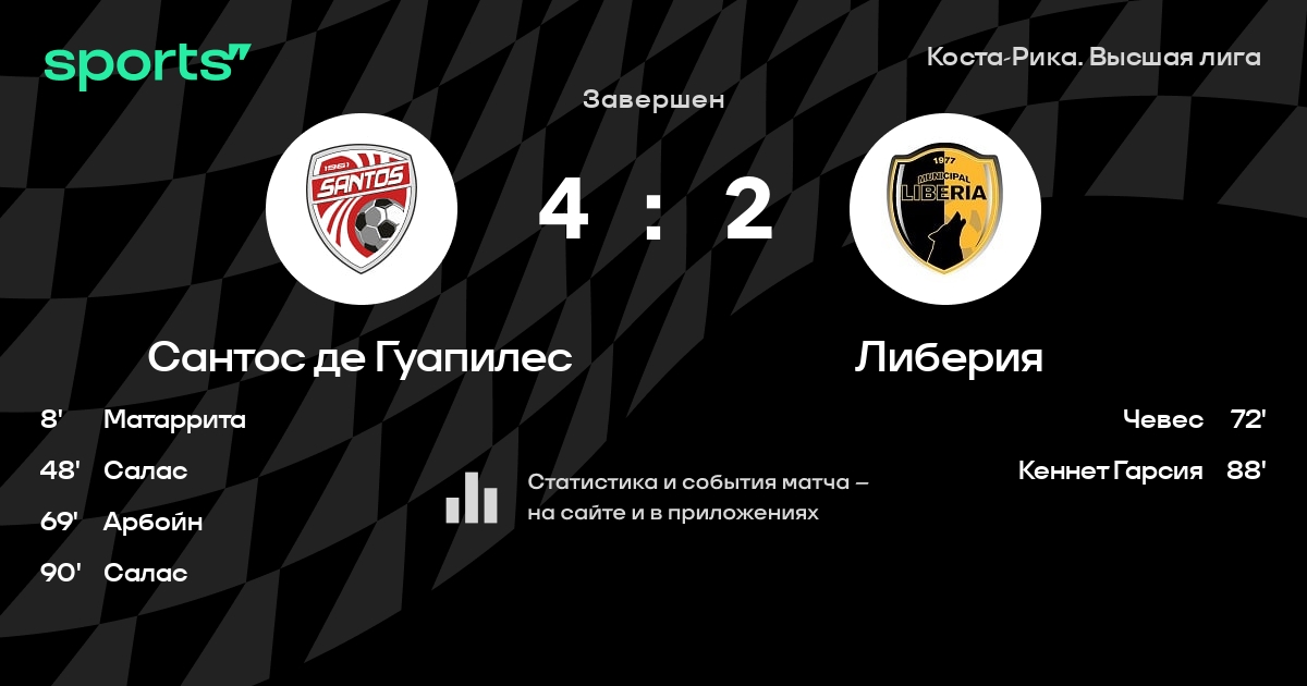 Трансляция Сантос де Гуапилес - Либерия