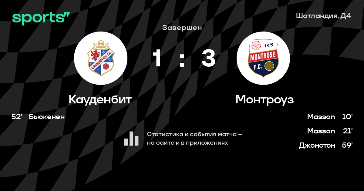 Fleming - Аллан, Баллантье, Кэмпбелл, Диллон, Steeves - Кэллаган, Masson, Watson - Джонстон, TemplemanЗапасные: Rose, Fotheringham, Макларен, Redman, Webster, Fraser, Hay