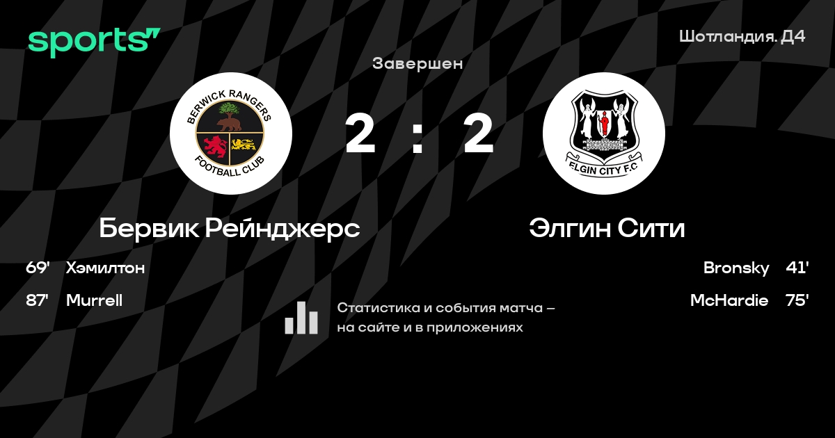 Трансляция Бервик Рейнджерс - Элгин Сити
