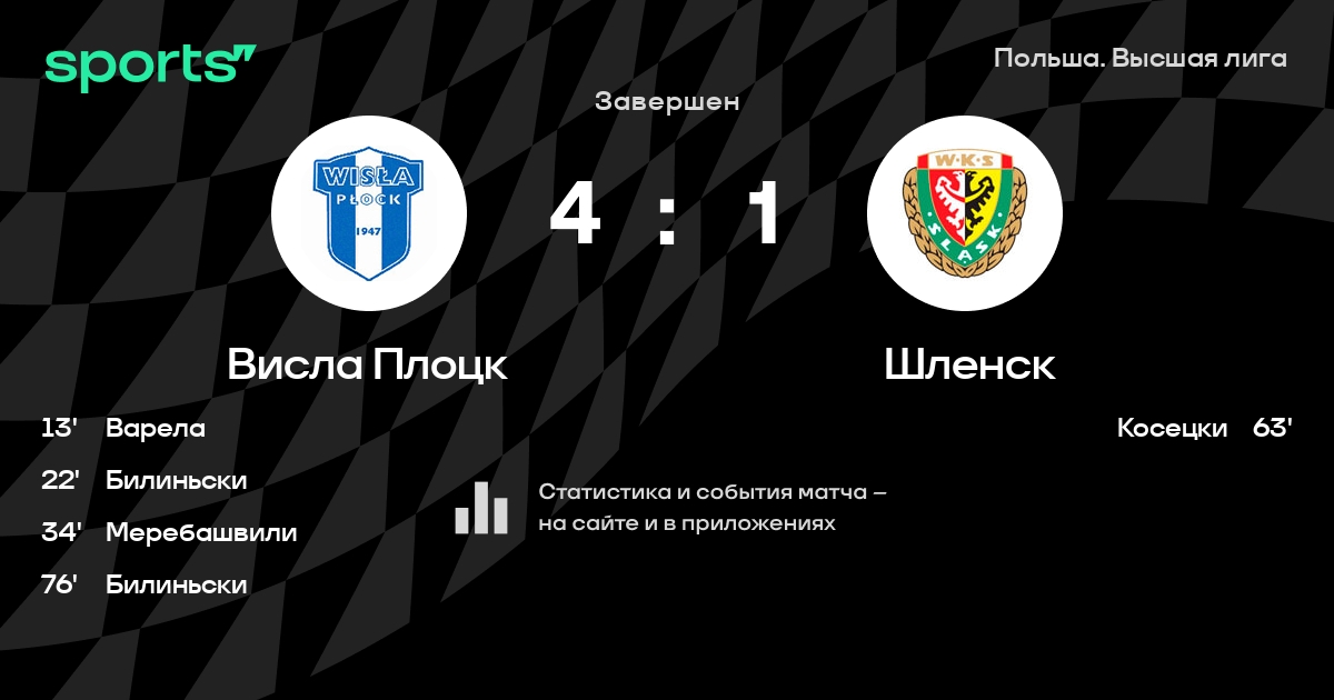 Трансляция Висла Плоцк - Шленск