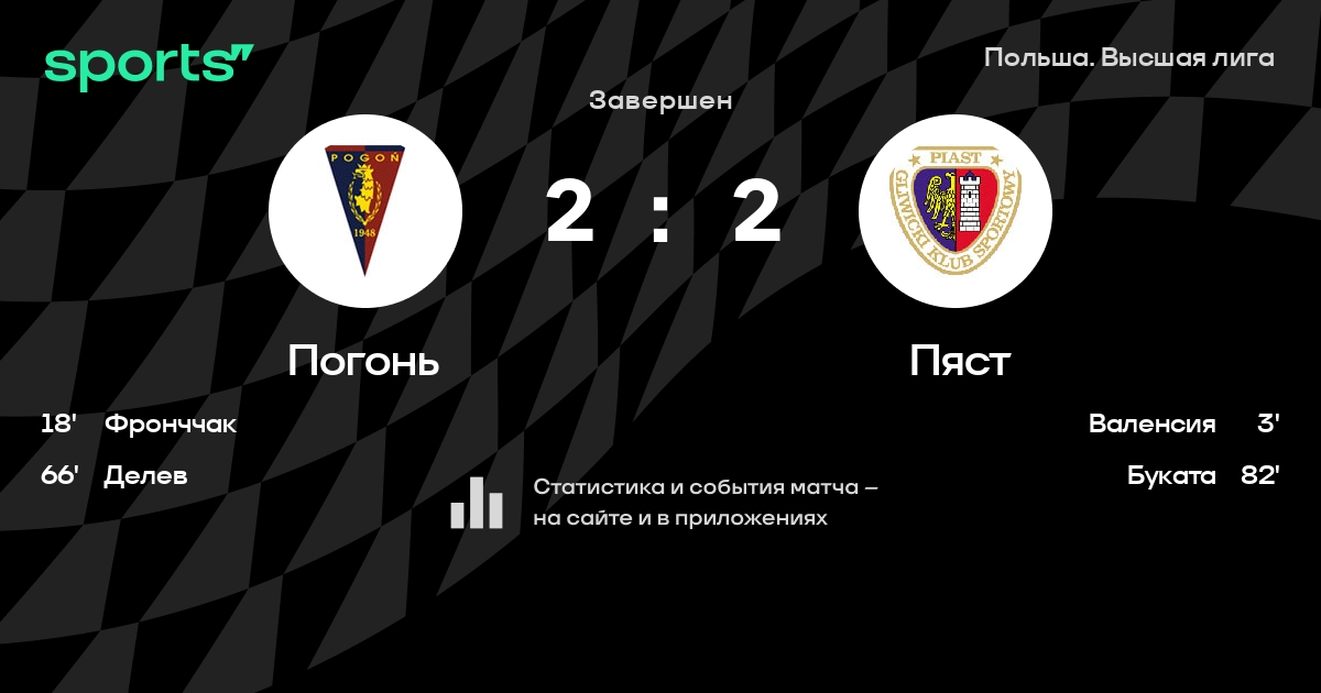| 2 | Ягеллония | 37 | 20 | 7 | 10 | 55 | 41 | +14 | 67 | ||