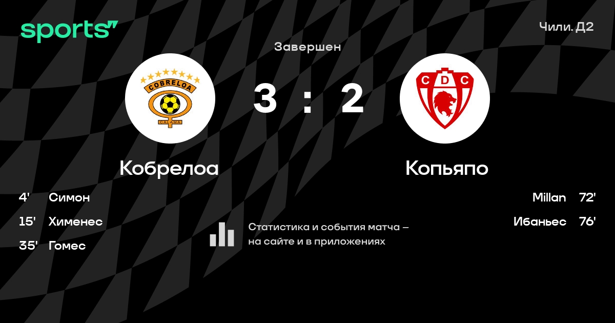 Cacace - Контрерас, Гомес, Сануэса, González Gutiérrez, Овьедо - Парра, Salcedo Contreras, Pavez - Хименес, СимонЗапасные: Quevedo Díaz, Álvarez, Vidal Latorre, Fernández Correa, Ríos Urrejola, Ромеро, Гуарино