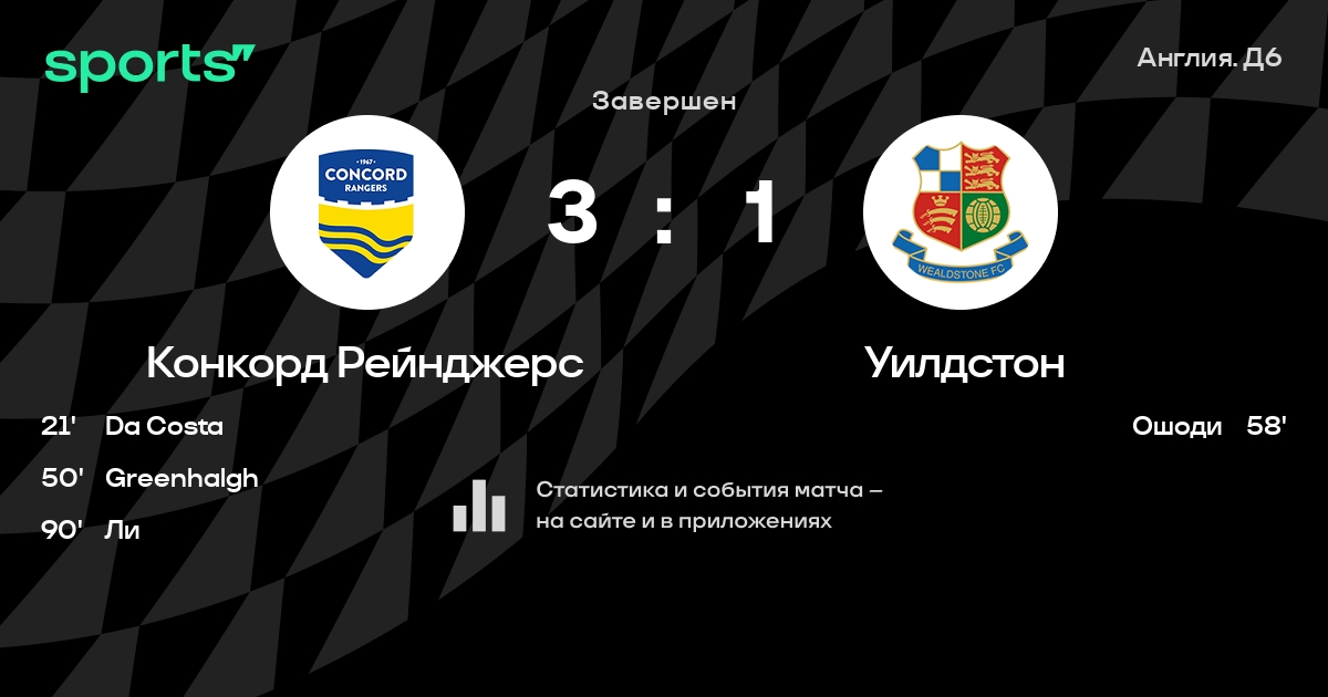 Трансляция Конкорд Рейнджерс - Уилдстон