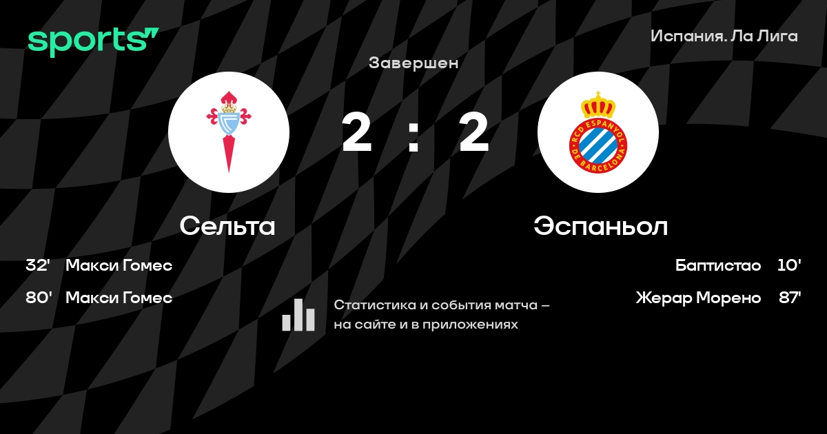 Диего Лопес - Аарон Мартин, Налдо, Давид Лопес, Наварро - Дардер, Санчес, Санчес, Хурадо - Жерар Морено, БаптистаоЗапасные: Лопес, Дуарте, Хави Лопес, Дидак Вила, Пьятти, Рока