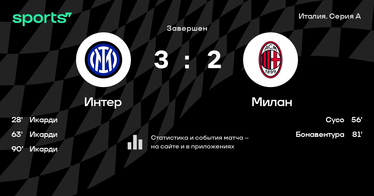 Ханданович - Нагатомо, Миранда, Шкриньяр, Д`Амброзио - Гальярдини, Весино, Валеро, Кандрева, Перишич - ИкардиЗапасные: Берни, Паделли, Жоау Канселу, Далберт, Раноккия, Сантон, Эдер, Карамо, Пинамонти