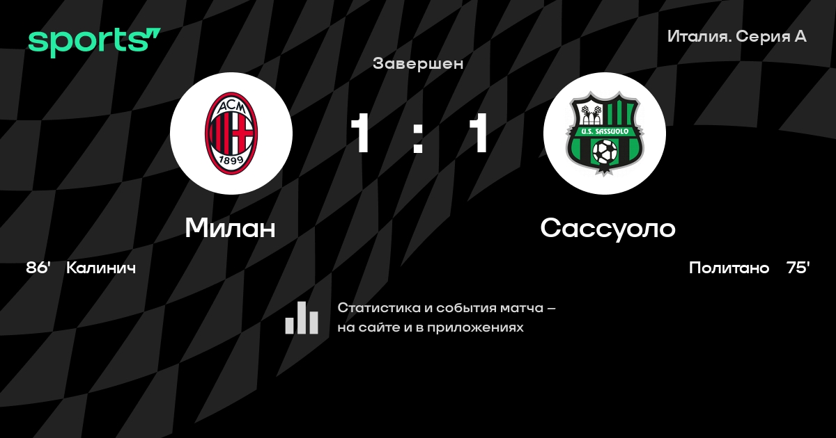Чемпионат Италии. «Милан» сыграл вничью с «Сассуоло», «Удинезе» уступил «Лацио»