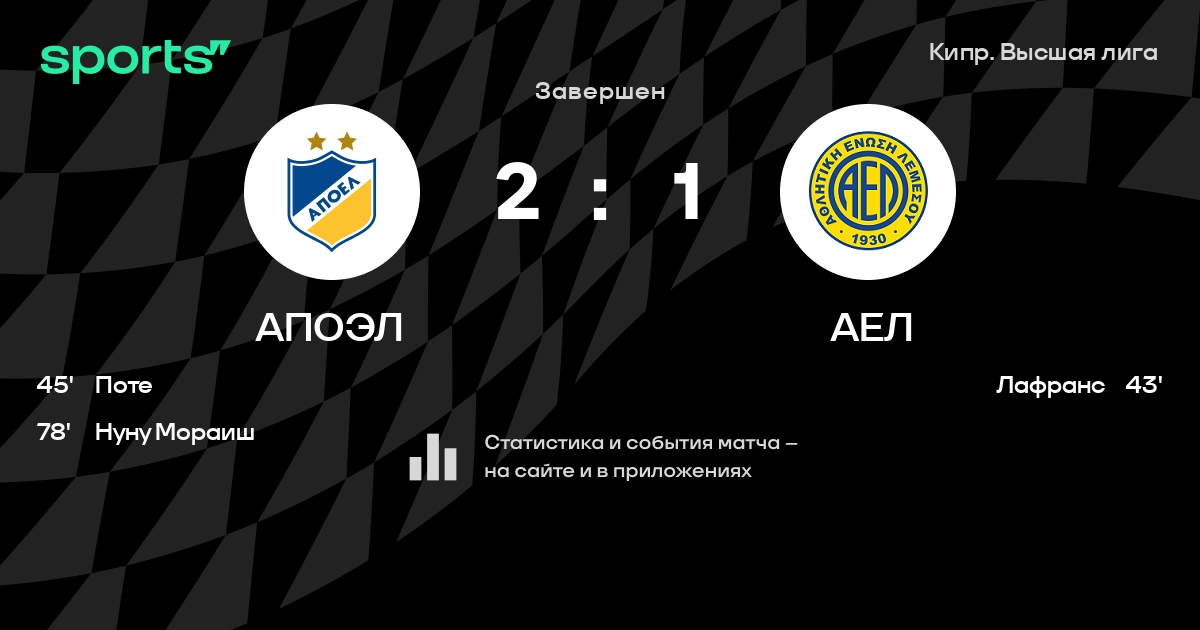 АПОЭЛ – АЕЛ: АПОЭЛ не проигрывает в 6 последних матчах против этого соперника
