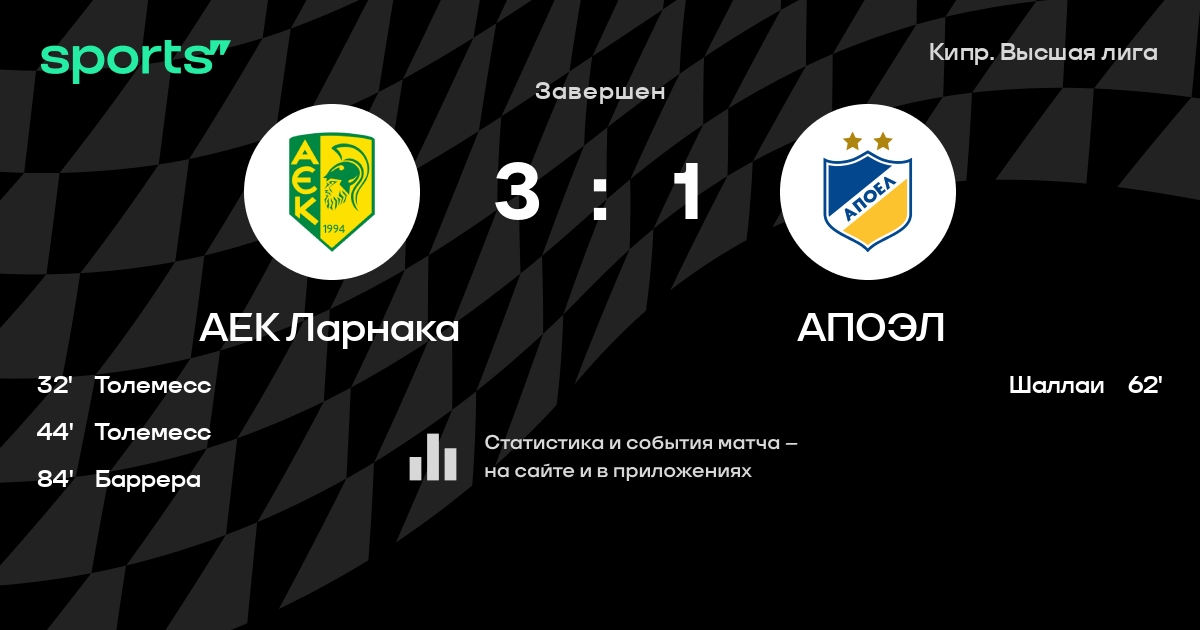 Пабло - Мурильо, Катала, Мойсов - Хевел, Баррера, Ларена, Лабан - Тете, Тричковски, ТолемессЗапасные: Георгаллидис, Сория, Антониадис, Энглезу, Нелсон, Панков, Малоку, Касес, Больевич, Рушиас, Митидис