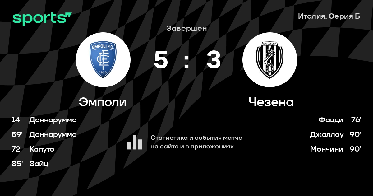 Альярди - Фацци, Риджоне, Эспозито, Пертиконе - Дальмонте, Лариби, Скьявоне, Коне, Купиш - ДжаллоуЗапасные: Фулиньяти, Мельграти, Фарабеголи, Мордини, Сконьямильо, Сетола, Мале, Сбрисса, Вита, Льоцци, Мончини, Панико