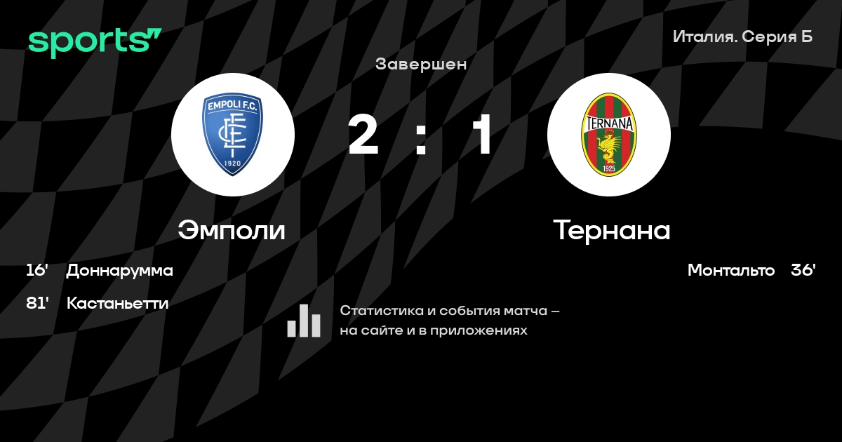 Проведель - Паскуаль, Весели, Романьоли, Ди Лоренцо - Беннасер, Кастаньетти, Крунич, Зайц - Доннарумма, КапутоЗапасные: Джакомель, Луперто, Польвани, Сек, Унтерзее, Дзаппелла, Шимич, Лолло, Траоре, Якупович, Нинкович, Пью
