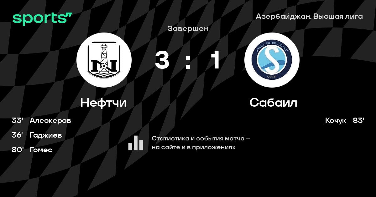 Агаев - Петров, Кривоцюк, Мирзабеков, Абышов - Махмудов, Меса, Гаджиев, Алескеров - Эррера, АббасовЗапасные: Азизли, Гыртымов, Серкеров, Кампас, Джеферов, Гарсия, Гомес