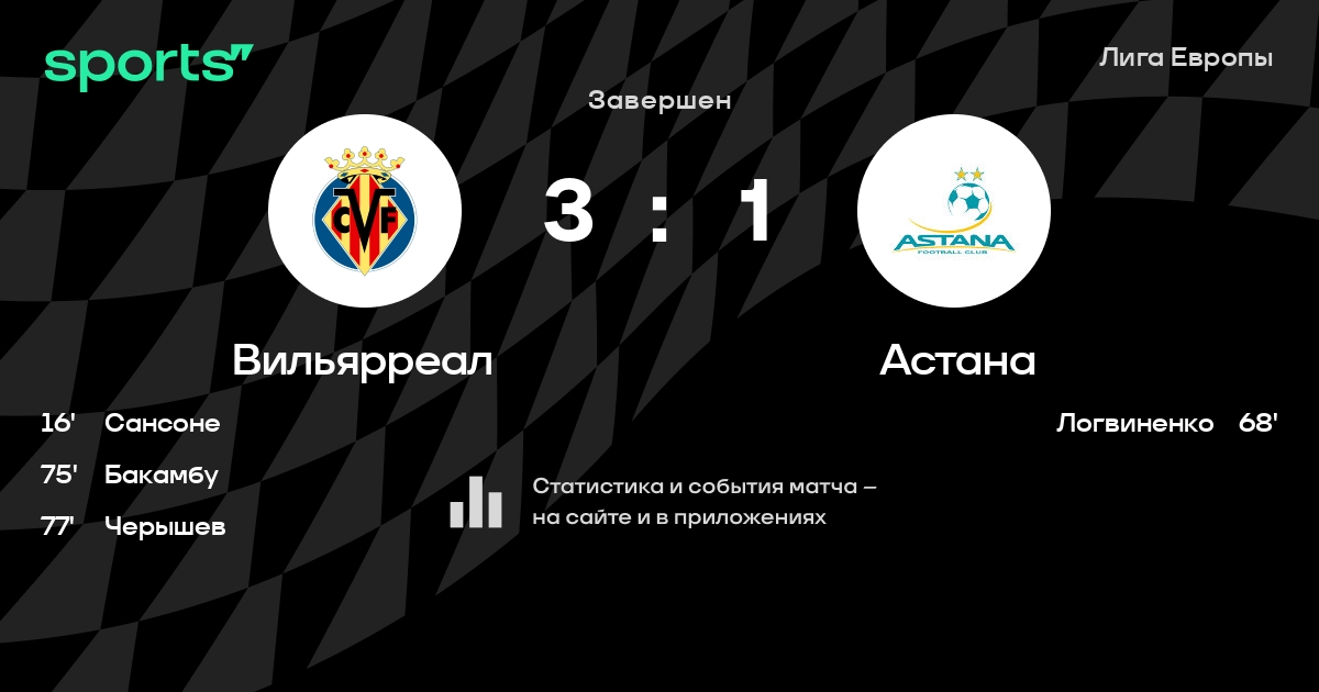 Трансляция Вильярреал - Астана