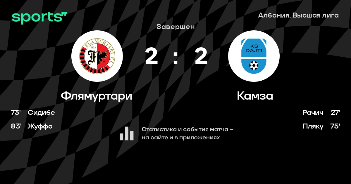 Сали - Велиу, Зука, Муста, Бицай - Сидибе, Усейни, Жуффо, Сильяновски - Данило Алвес, КамараЗапасные: Кирко, Maze, Хюсени, Делиай, Tushi, Ходжай