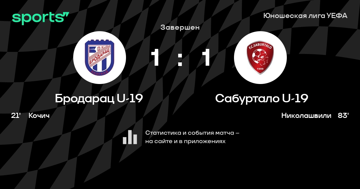 Бродарац U-19 – Сабуртало U-19: коэффициенты