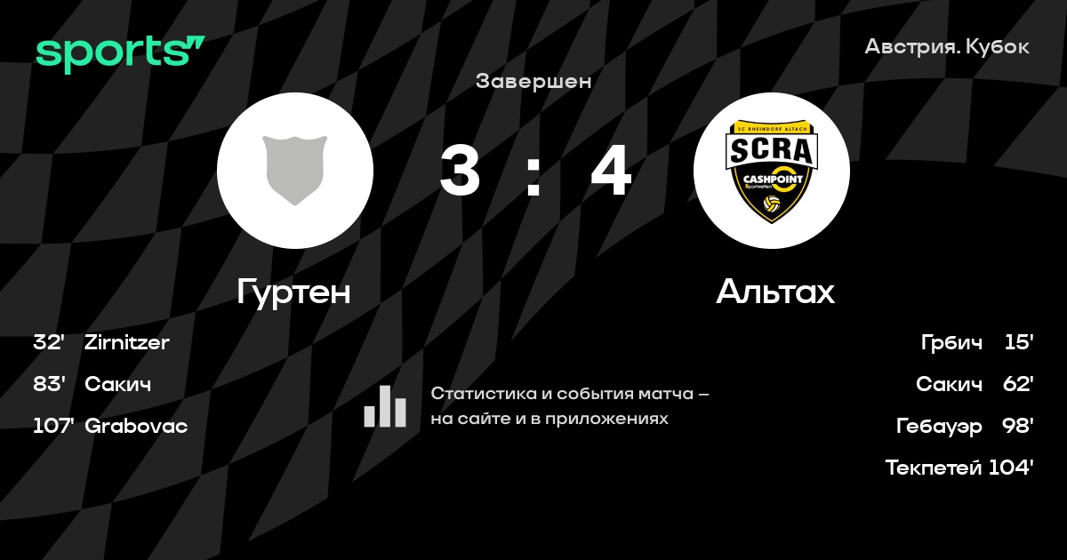 Brunthaler - Reiter, Zirnitzer, Schnaitter, Бургхубер, Hirsch - Wirth, Schott, Feichtinger, Tóth - БайичЗапасные: Wittner, Hüttmair, Kolakovic, Белем, Grabovac