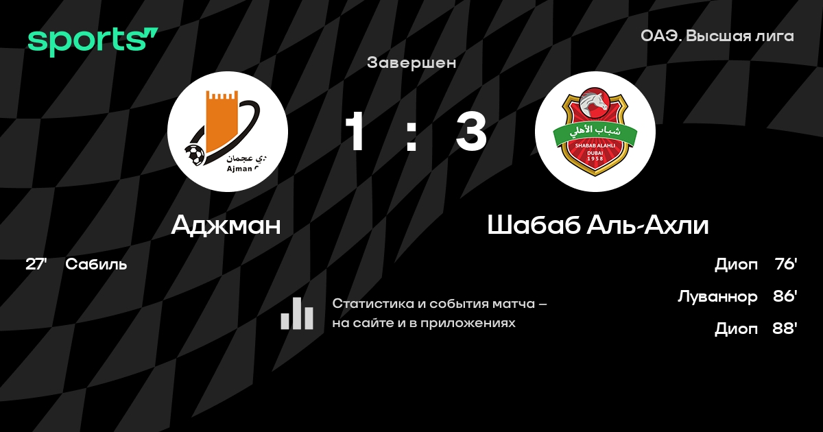 Аджман – Шабаб Аль-Ахли: коэффициенты
