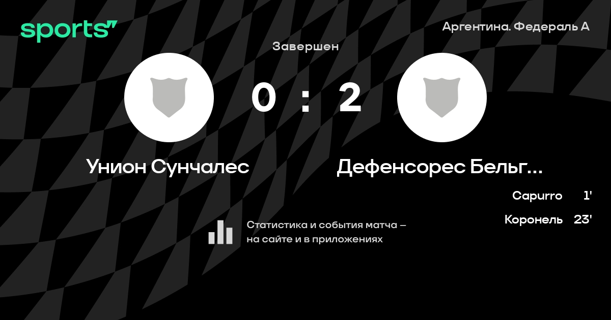 Трансляция Унион Сунчалес - Дефенсорес Бельграно ВР