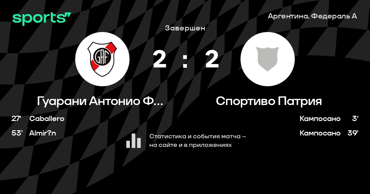 Трансляция Гуарани Антонио Франко - Спортиво Патрия