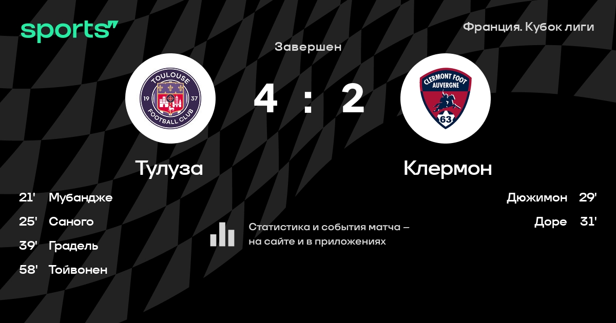 Лафон - Мубандже, Жюльен, Диоп, Яго - Градель, Бодижер, Каюзак, Жан - Саного, ТойвоненЗапасные: Гойкоэчеа, Мишлен, Силла, Буагар, Имбула, Сангаре, Делор