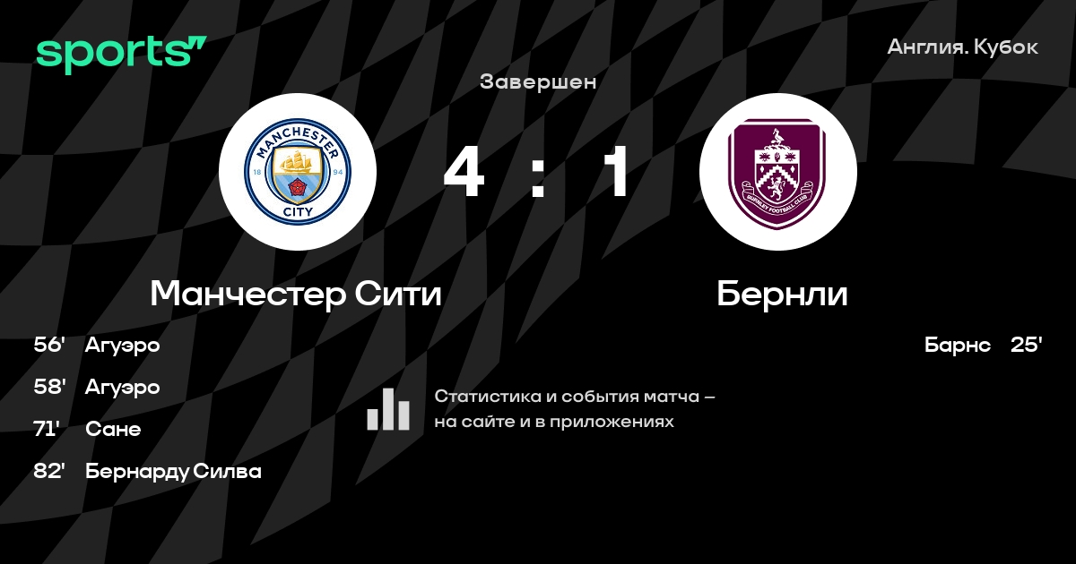 Браво - Зинченко, Отаменди, Стоунз, Данило - Сильва, Фернандиньо, Гюндоган - Сане, Агуэро, СтерлингЗапасные: Эдерсон, Мангаля, Уокер, Браим Диас, де Брюйне, Бернарду Силва, Туре