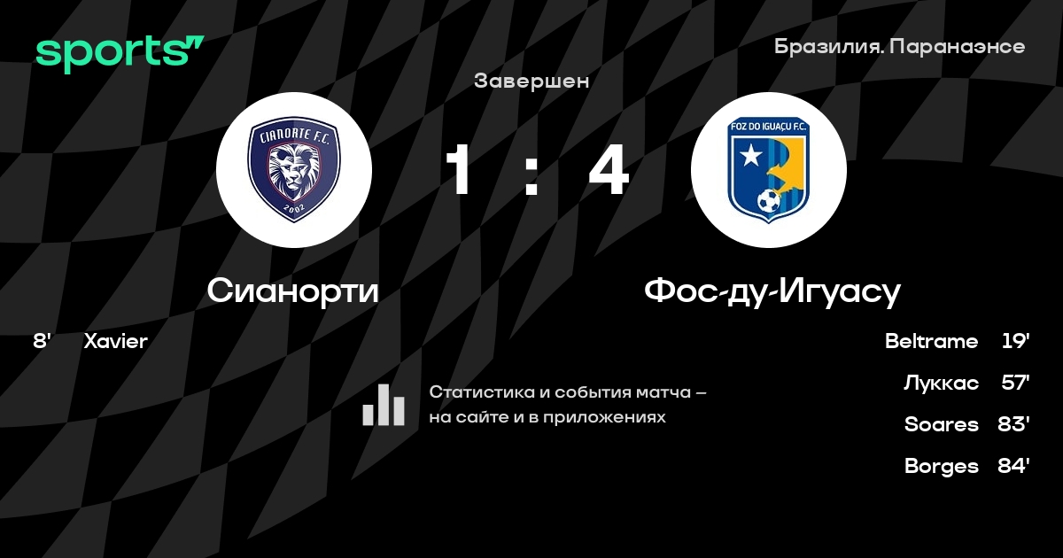 Cardoso - dal Omo de Oliveira, da Silva Beltrame, de Sousa Monteiro, Алекс, Леандро Силва - Олаво, Майкон, de Souza Ramos - Шорр, ЛуккасЗапасные: Nery Souza, Barreto da Silva, Tasca, Spitzner, da Silva Rocha, Маркиньос Гомес, de Oliveira, Gomes Soares, Mascena Borges