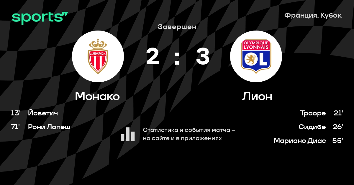 Антони Лопеш - Диакаби, Марсело, Марсал, Тете - Ферри, Ндомбеле, Тузар - Депай, Мариано Диас, ТраореЗапасные: Горжлен, Морель, Рафаэл, Ауар, Корне, Фекир, Гуири