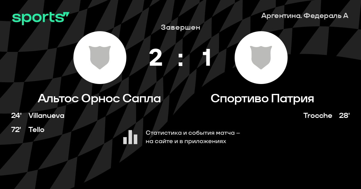 Трансляция Альтос Орнос Сапла - Спортиво Патрия