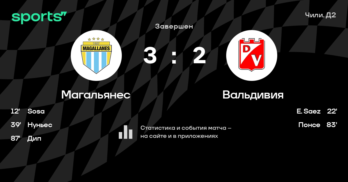 Маль - - Aránguiz Aránguiz, Нуньес, Jones Mariani, Аравена, Sanhueza Esparza, Серрано - Valenzuela Fuentes, Аренас, Дип, SosaЗапасные: Burgos Urzúa, Pérez González, Feres García, Martinez Díaz, Torres Varas, Эскобар, Барруалье
