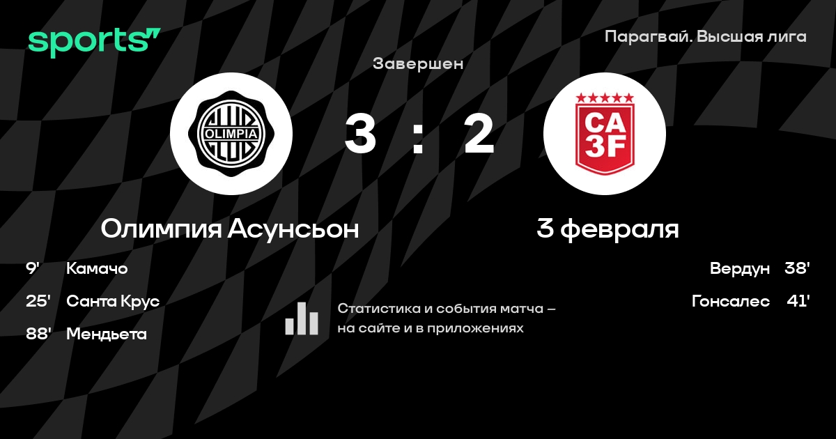 Агиляр - Отальваро, Верон, Диас, Легисамон - Мендьета, Санчес, Кабальеро - Санта Крус, Кардосо, КамачоЗапасные: Аскона, Патиньо, Торрес, Фернандес, Монтенегро, Бенитес, Ортега