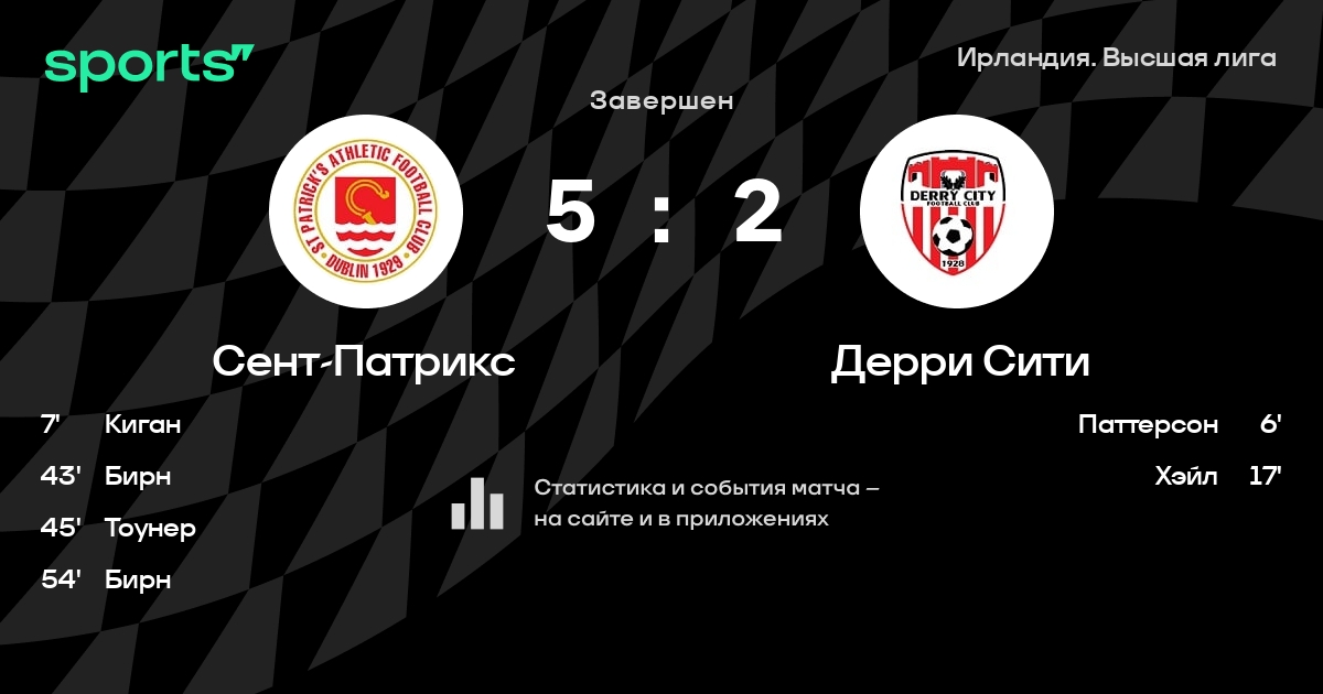 | 5 | Сент-Патрикс | 36 | 15 | 5 | 16 | 51 | 47 | +4 | 50 | ||
