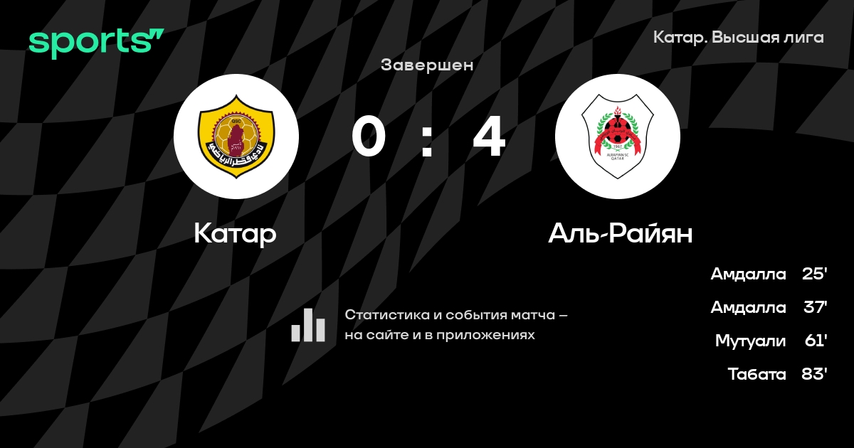 | 3 | Аль-Райян | 22 | 13 | 4 | 5 | 54 | 39 | +15 | 43 | ||