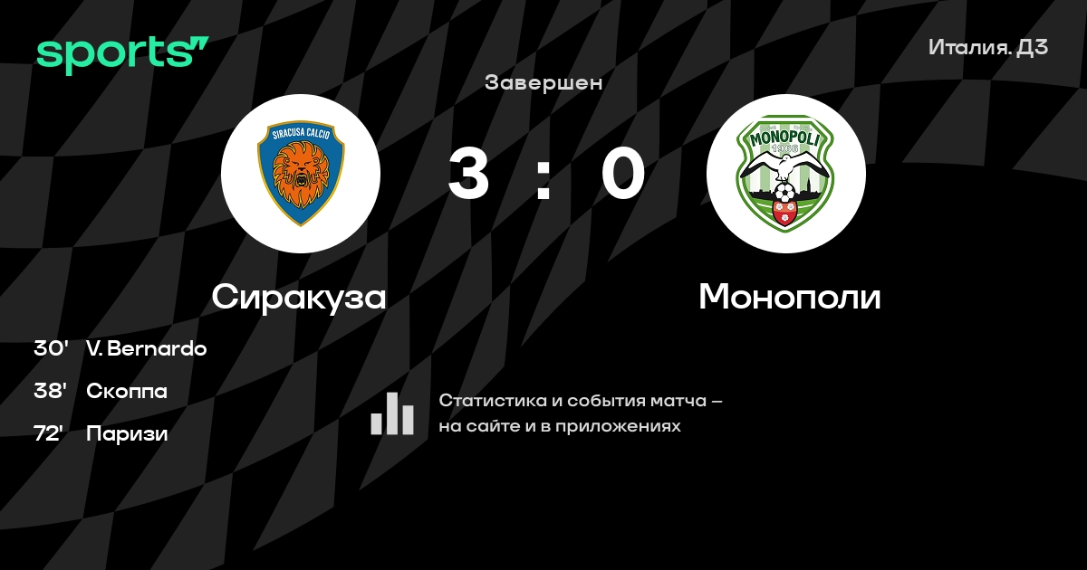 Бардини - Доннарумма, Rota, Баккетти, Меркаданте, Ferrara - Скоппа, Сунас, Мавретич - Sarao, SalveminiЗапасные: Convertini, Левандовски, Беи, Benassi, Tafa, Паолуччи, Russo, Longo, Манньи, Миникуччи, Genchi