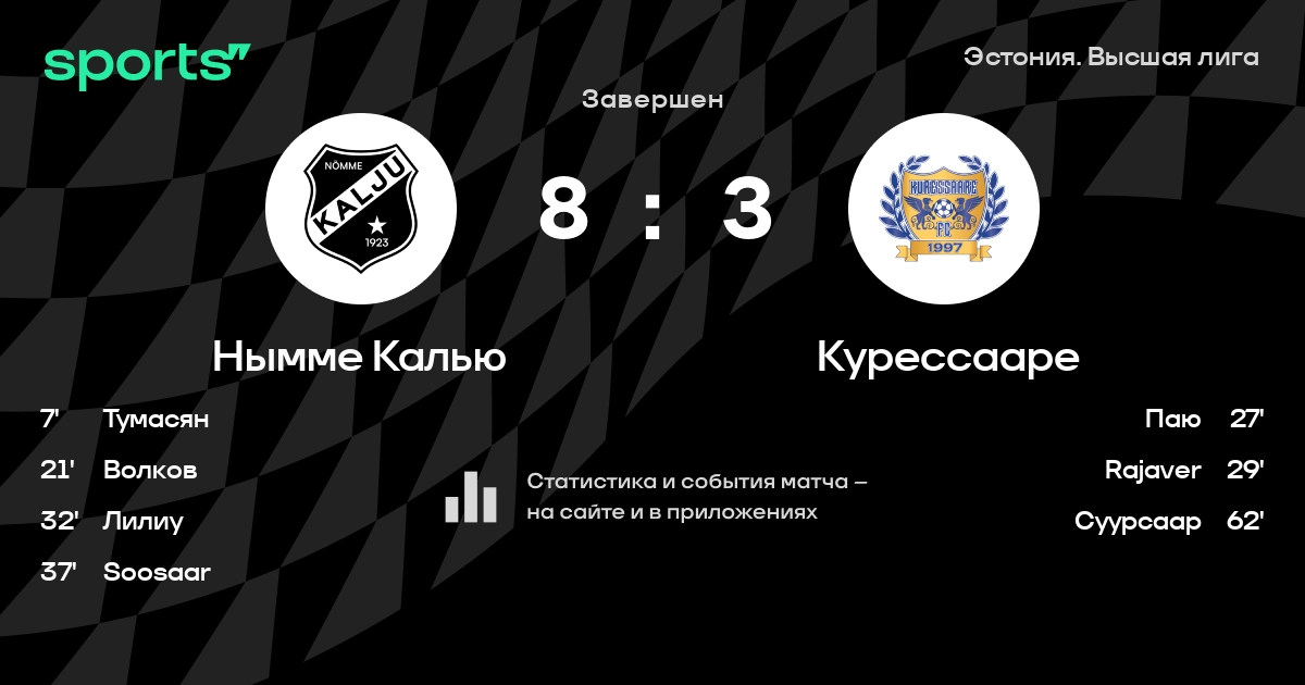 Телеш - Элхи, Авилов, Мяги, Удже, Тяпкин - Тумасян, Волков, Mbu Alidor, Субботин - ЛилиуЗапасные: Лондак, Бртан, Тамм, Клейн, Хунт
