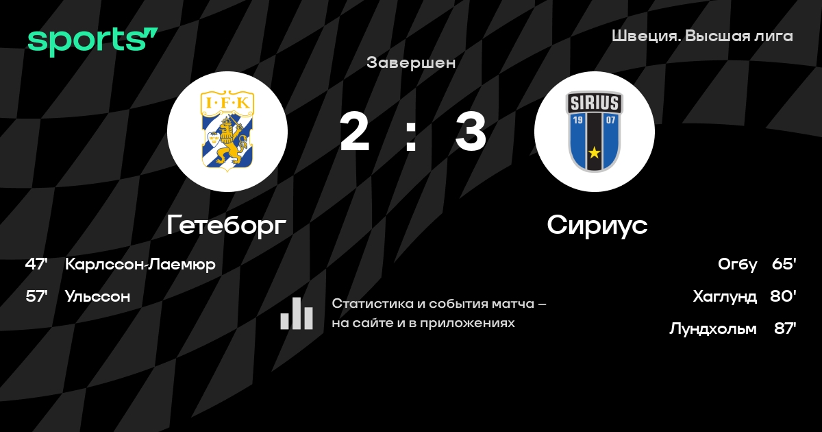 Юнссон - Арвидссон, Перссон, Эйсвольд, Бьоркстрем - Сирелиус, Перссон, Густафссон - Джорджес, Лундхольм, ХаглундЗапасные: Фегруш, Бьорнстрем, Ларсон, Альборноз, Линдберг, Саед, Огбу