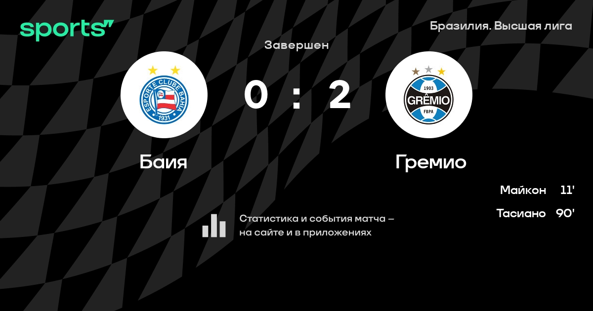 Гроэ - Кортес, Каннеманн, Брессан, Леонардо - Майкон, Жаилсон, Тони Андерсон, Рамиро, Эвертон - АндреЗапасные: Грасси, Пауло Виктор, Пауло Миранда, Мадсон, Винисиус Лима, Сисеро, Кайо, Тасиано, Майкосуэл, Матеус Энрике, Пепе Акино, Эрнане