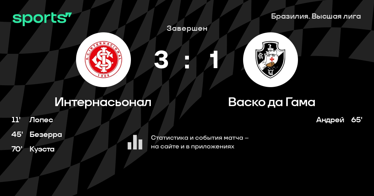 Фернандо - Энрике, Эрасо, Миранда, Луис Густаво - Десабато, Андрей, Бруно Косендей, Джованни Аугусто, Яго Пикачу - РиосЗапасные: Габриэл Феликс, Мотта, Веллингтон, Дуду, Раул, Лукас Сантос, Эвандер, Мореске, Гальярдо, Кайо, Уго Боржес